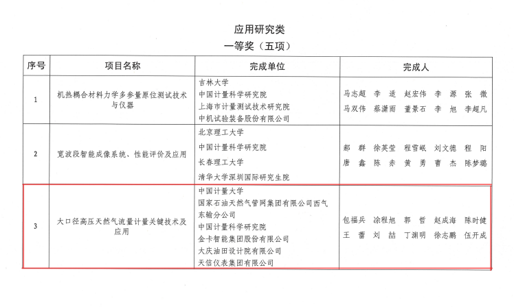 大口径高压长输管线上的流量计量关系国家利益。该项目启动前,我国天然气管线流量计量存在国内产品测不了,缺乏标准装置检不了两大痛点。对此,由中国计量大学牵头,联合国家石油天然气管网集团有限公司西气东输分公司、中国计量科学研究院、金卡智能集团股份有限公司、大庆油田设计院有限公司、天信仪表集团有限公司等多家单位,开展产学研用技术攻关,取得了三个方面的创新成果:研发超声和涡轮流量计,掌握了管输流量的定量权;研制mt法原级流量标准装置,掌握了流量计质量优劣的定质权;建立了实流高压天然气流量量传和溯源体系,获得了国际主动权。项目制定国家标准6项,发表论文39篇,授权发明专利32件,近三年新增收入超7亿元,保障了我国天然气管线正常运行和能源安全,结束了我国大口径高压天然气流量计只能国外送检的历史。