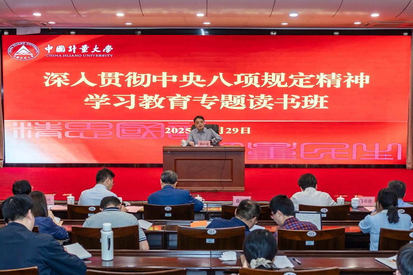 校纪委书记马春波作题为《深入贯彻落实中央八项规定精神,以优良作风建设护航学校事业 高质量发展 》的专题辅导报告。他通过“一席百元”与“一盆鸡汤”之别生动阐述了作风建设的重要内涵,以漫画说廉、以案释纪的方式详细宣讲了违反中央八项规定精神的主要表现,要求学校党员干部要切实从“学、查、促、改”等四个方面抓好深入贯彻中央八项规定精神学习教育,斩断风腐交织链条,进一步打造“量秀清风”文化品牌、纵深推进“清廉量大”建设,以优良作风护航学校高质量发展。