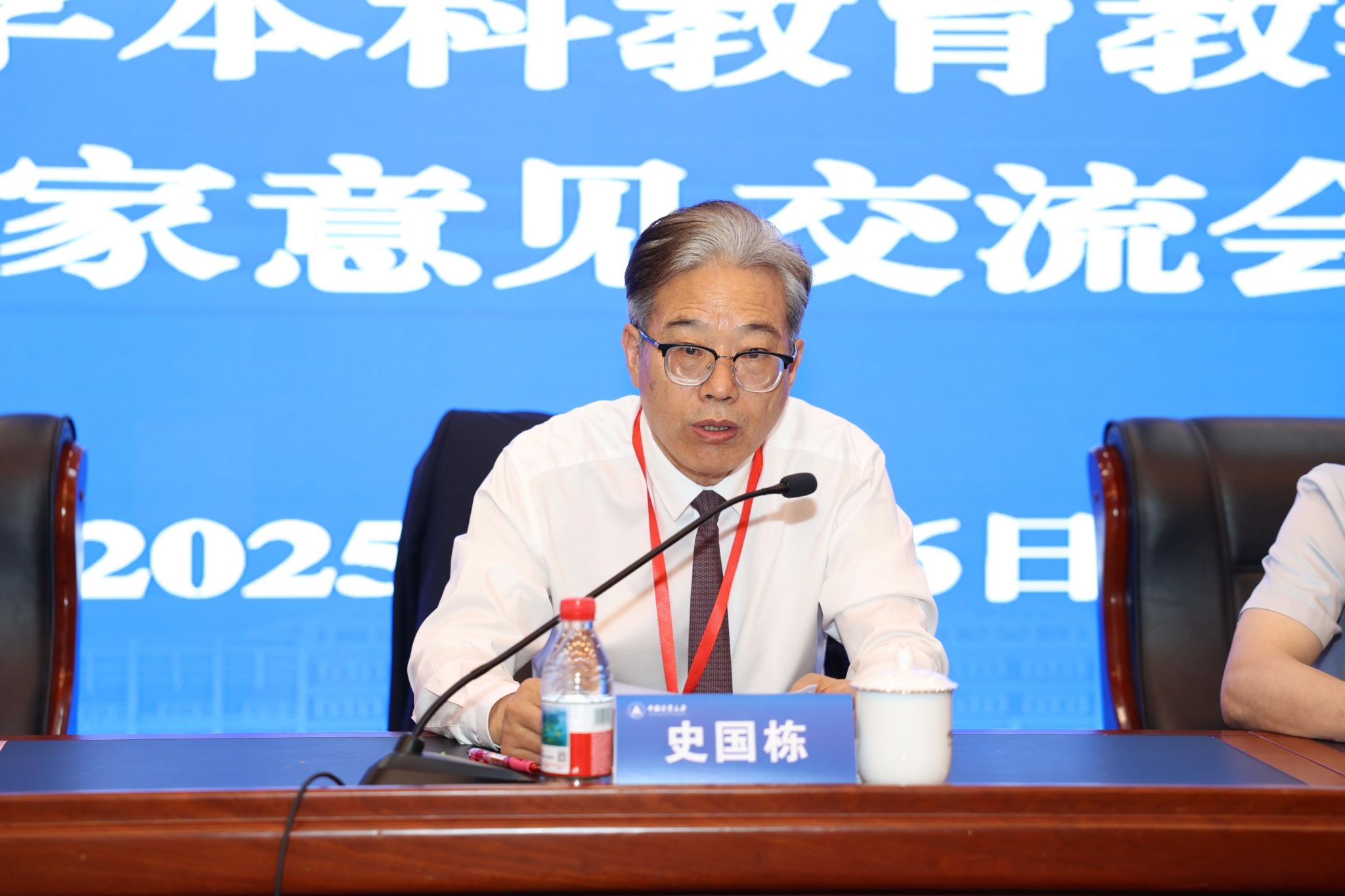 史国栋代表专家组介绍审核评估考察工作整体情况。综合线上评估和入校评估两个阶段的考察工作,专家组评价了我校本科教育教学工作的举措成效与亮点特色,一致认为学校在以下五个方面应予以高度肯定:一是党建赋能计量文化育人特色鲜明;二是行业特色引领专业建设成效明显;三是赛教融合推进学科竞赛成绩突出;四是“四大工程”锻造教师队伍发展梯队;五是多元协同助推学生发展体系全覆盖。专家组通过对照学校全面建设高水平大学的办学目标,对学校教育教学整体情况问诊把脉,提出需要进一步思考和改进的六个问题:一是本科优先地位弱化,教育资源倾斜不足;二是学科专业一体化建设机制不够完善,拔尖人才培养示范作用发挥得不够明显;三是产出导向理念落实不实,课堂教学改革成效不明显;四是产教协同机制不畅,实践教学资源效率不高;五是教师教学发展体系不健全,教学内生动力不足;六是成果导向落实不深,质量保障闭环还不够完善。