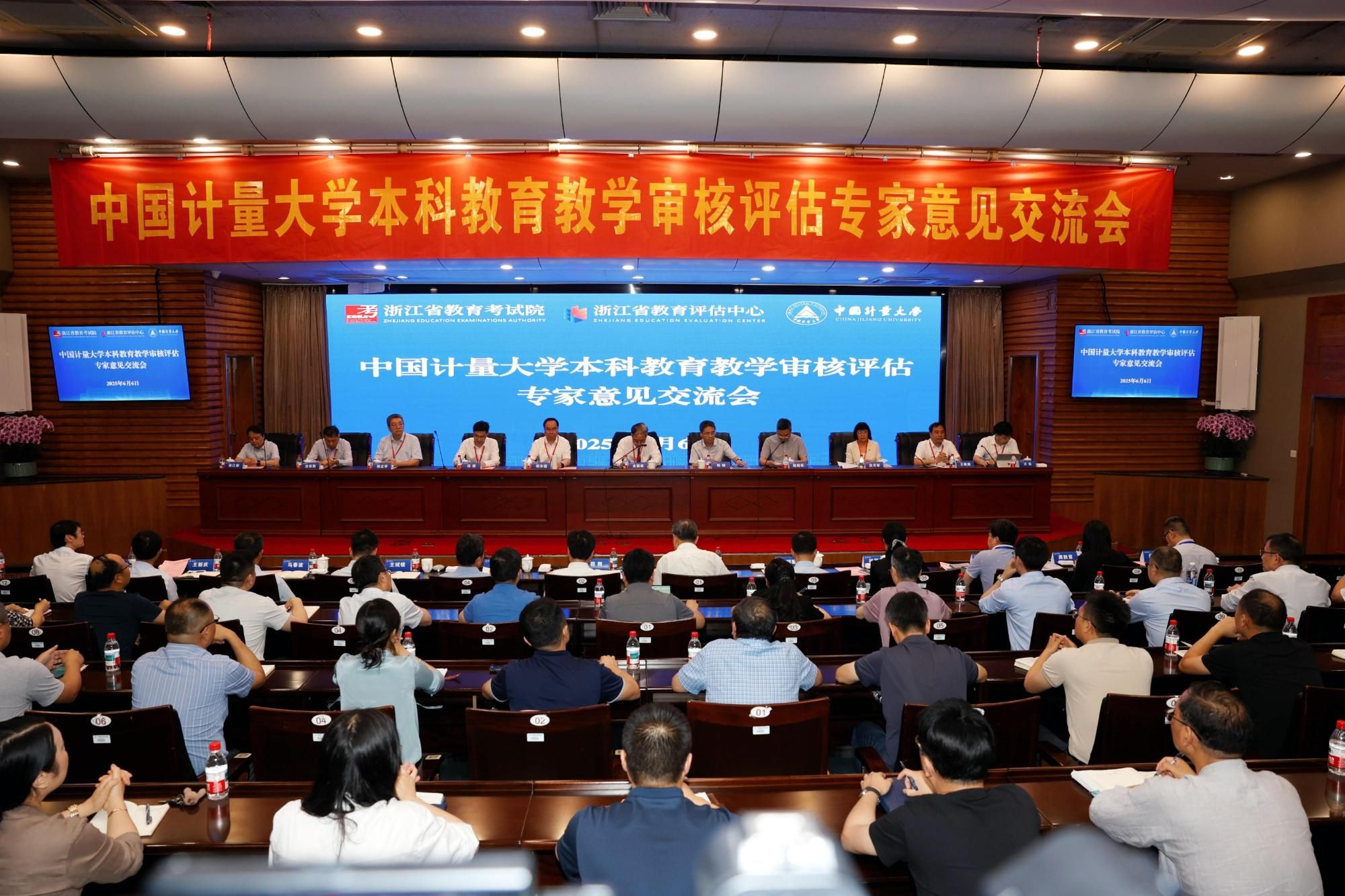 6月6日下午,中国计量大学本科教育教学审核评估专家组意见交流会在学校闻厅二楼报告厅召开。审核评估专家组组长、常州大学原党委书记史国栋,副组长、浙江科技大学党委书记赵东福,专家组成员,浙江省委教育工委委员、省教育厅党组成员、副厅长陈峰,浙江省教育厅高教处处长、学位办主任蓝邓骏,中国计量大学党委书记徐江荣等出席交流会,会议由浙江省教育考试院党委副书记陈煜军主持。