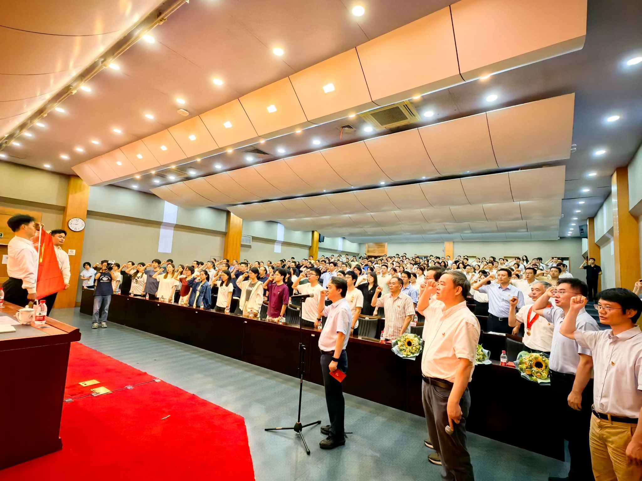 大会举行了2025年党员集体宣誓仪式,徐江荣领誓,新发展党员进行入党宣誓、参会党员重温入党誓词。