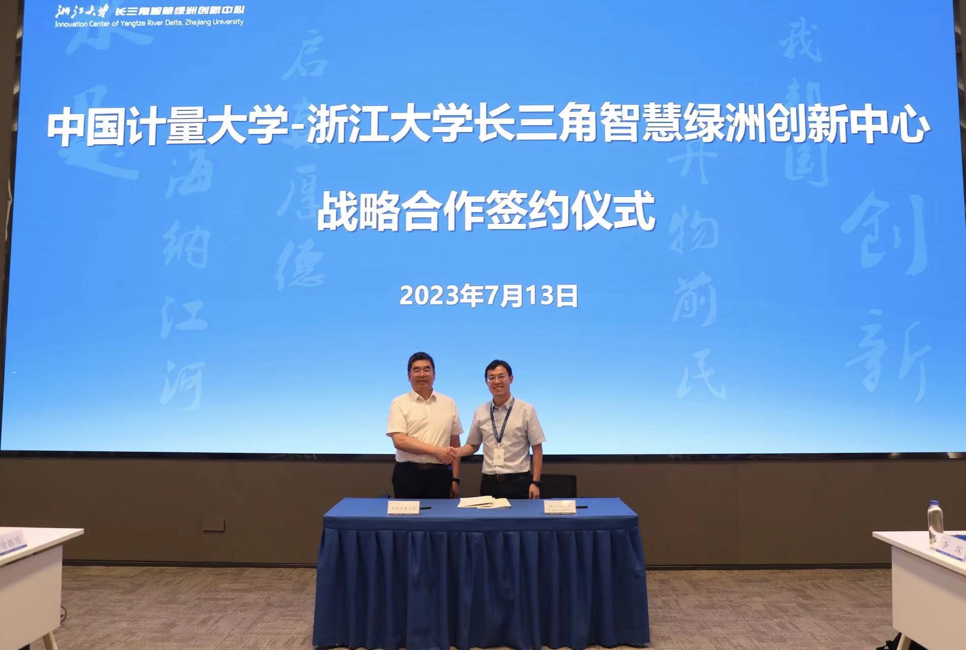 7月13日下午,我校与浙江大学长三角智慧绿洲创新中心战略合作协议签约仪式在嘉善县祥符荡科创绿谷举行,浙江大学长三角智慧绿洲创新中心党工委书记林伟连、主任范骁辉,副校长葛洪良出席签约仪式并讲话。嘉善县科技局党组成员、平台人才科科长徐振丽,浙大长三角智慧绿洲创新中心各部门负责人,我校科研院、对外联络处、材化学院、质安学院、生命学院等单位负责人参加签约仪式。