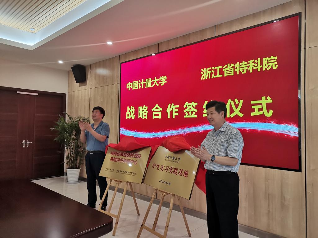 7月16日,我校与浙江省特种设备科学研究院战略合作签约仪式在省特科院大江东基地举行。校长宋明顺、省特科院院长钟海见代表双方签约,并为“特种设备检验检测及风险评价协同中心”和“中国计量大学学生实习实践基地”揭牌。省市场监管局覃敏华调研员,钱塘新区管委会李鹏副主任,钱塘新区市场监管局田晓祥局长,省市场监管局陈戟副处长,以及学校相关部门负责人、省特科院班子成员等出席签约仪式。