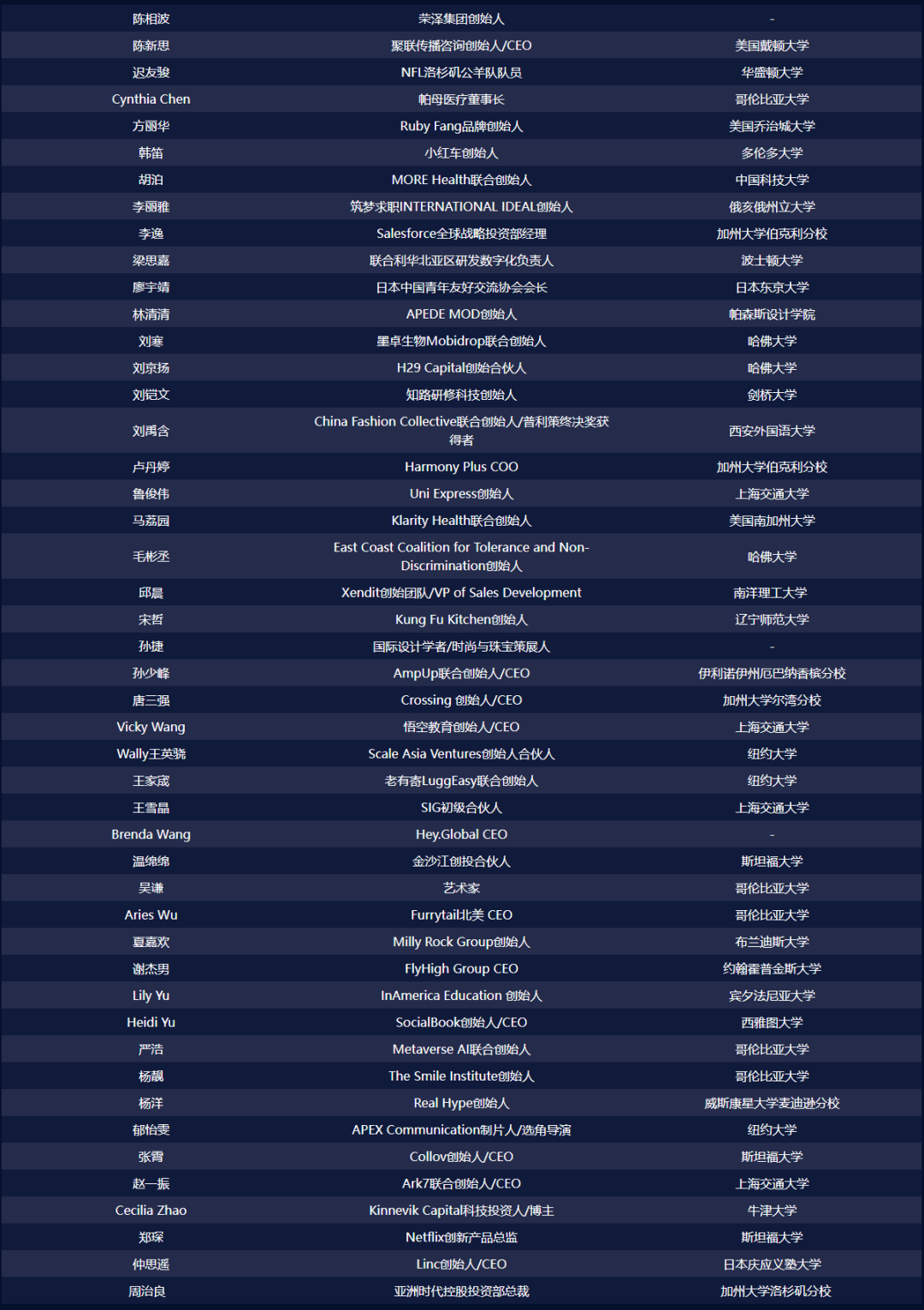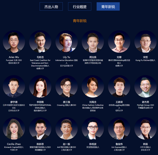 2022年福布斯中国·全球华人精英Top 100”的“青年新锐”(图片来源:福布斯中国)