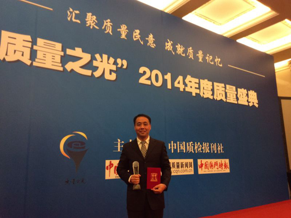 12月26日,“质量之光”2014年度质量盛典在北京人民大会堂举行,来自国家质检总局的领导、著名经济学家、质量专家为获得“年度魅力品牌”、“质量标杆企业示范”、“年度地标产品”、“年度质量人物”等十余项奖项获奖单位和个人颁奖。我校84级电磁专业校友邵海明获得年度质量人物奖。