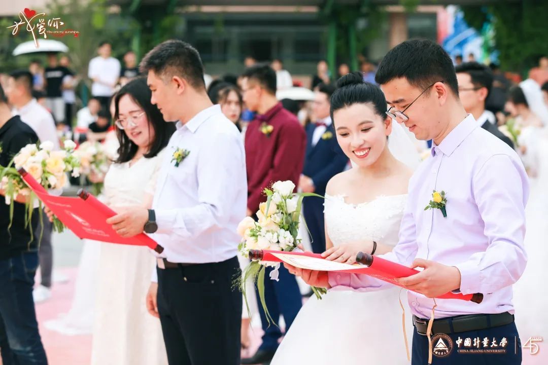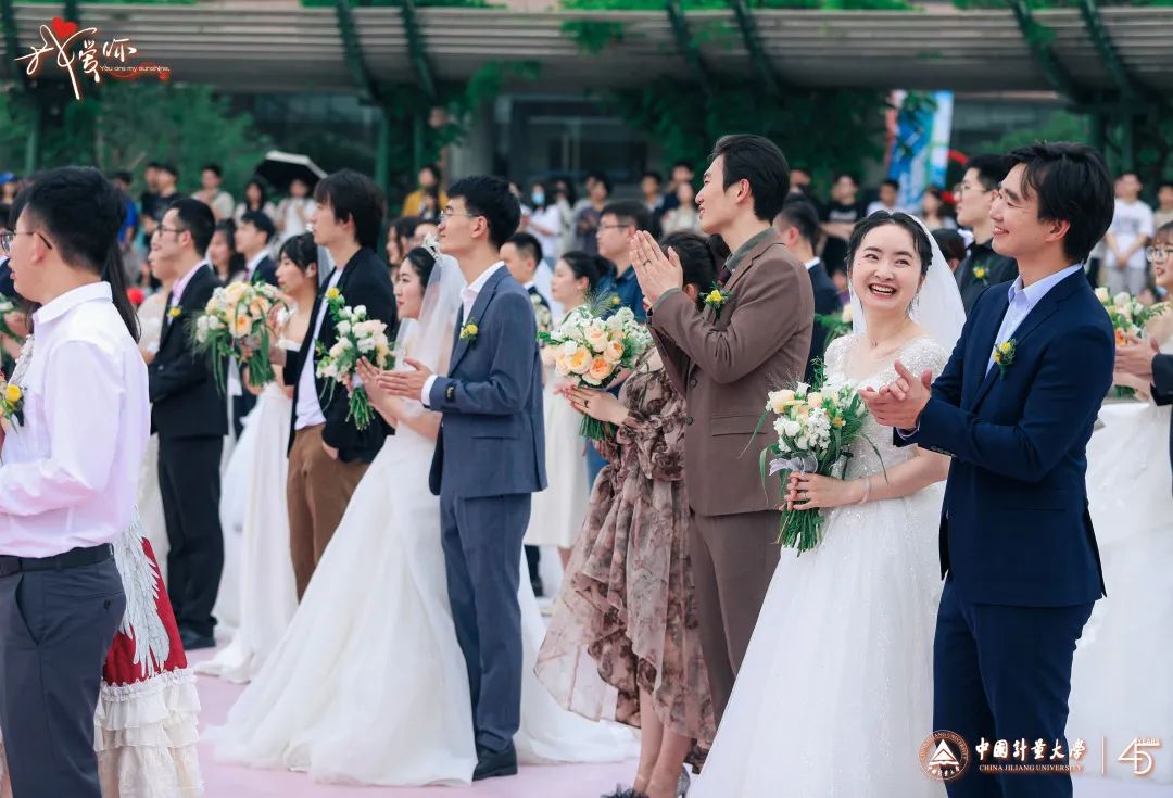 “仪式感拉满!”“是值得珍藏一辈子的记忆!”“对你的喜欢,一个嘉量装不下。”新人们收获了满满的幸福与感动。据悉,中国计量大学第二届校友集体婚礼是学校2023年计量文化节系列活动之一,也是45周年校庆系列活动的重要内容。接下来,学校还将开展院士报告、嘉量讲坛、高端峰会、全国学术研讨会等30余项活动,推动计量文化的保护传承、创新发展、教育普及。