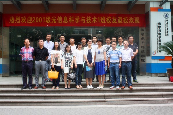 6月7日,光信息科学与技术专业2001级1班的近20名校友,在毕业十周年之际,从全国各地齐聚量院,参加母校聚会。光电学院院长助理陈亮,光信息科学与技术专业负责人沈常宇,外国语学院学工办主任、原01光信1班班主任金民华在赛南408会议室与校友们进行了座谈。座谈会由光电学院学工办主任鄂非主持。