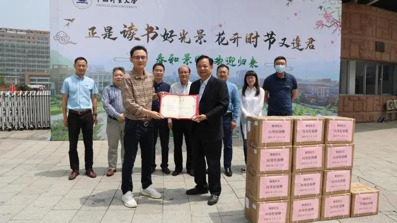 冯时林代表学校向魏捷校友颁发捐赠证书和感谢信,对校友心系母校、热心捐赠表示感谢。他表示学校复学开课牵挂着量大校友的心,校友情系母校、心系师生,慷慨解囊支持母校的抗疫工作。不仅增添了母校师生战胜疫情的必胜信心,缓解了母校抗击疫情工作的压力,更是用实际行动诠释了广大校友同心协力、共克时艰的责任担当。