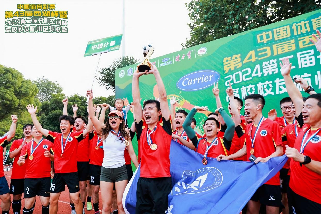 中国体育彩票第43届西湖杯暨2024第二届开利空调杯高校校友杭州足球联赛”于6月15号在杭州电子科技大学落下帷幕,我校杭州校友足球队在省内组决赛中击败主队杭州电子科技大学夺得省内赛区冠军,并将在9月份秋季联赛揭幕式与省外组冠军南昌大学争夺总冠军。这是我校继去年夺得“中国高校校友浙江足球赛2023春季联赛”冠军后的成功卫冕。