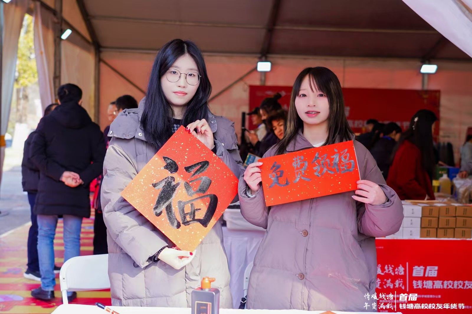 活动还专门邀请了浙江工商大学校友、我校及浙江传媒学院的学生现场书写福字免费赠送给消费者,为大家送喜气、添福气、纳千祥。