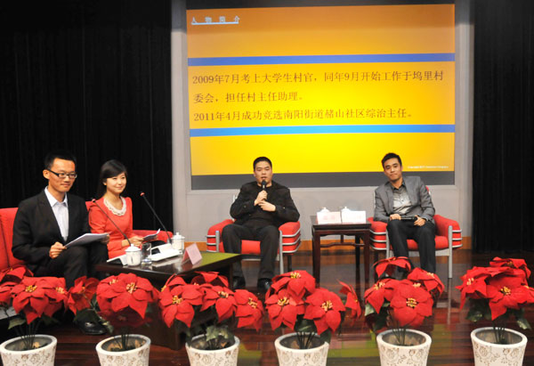 访谈中,创业导师张露校友还与同学们详细探讨了创业的前期准备,鼓励学有余力的同学在大学期间积极创业;大学生村官孙健峰校友向同学们介绍了有关大学生村官的优惠政策、选拨机制以及职业前景,鼓励同学到基层建功立业、服务社会。