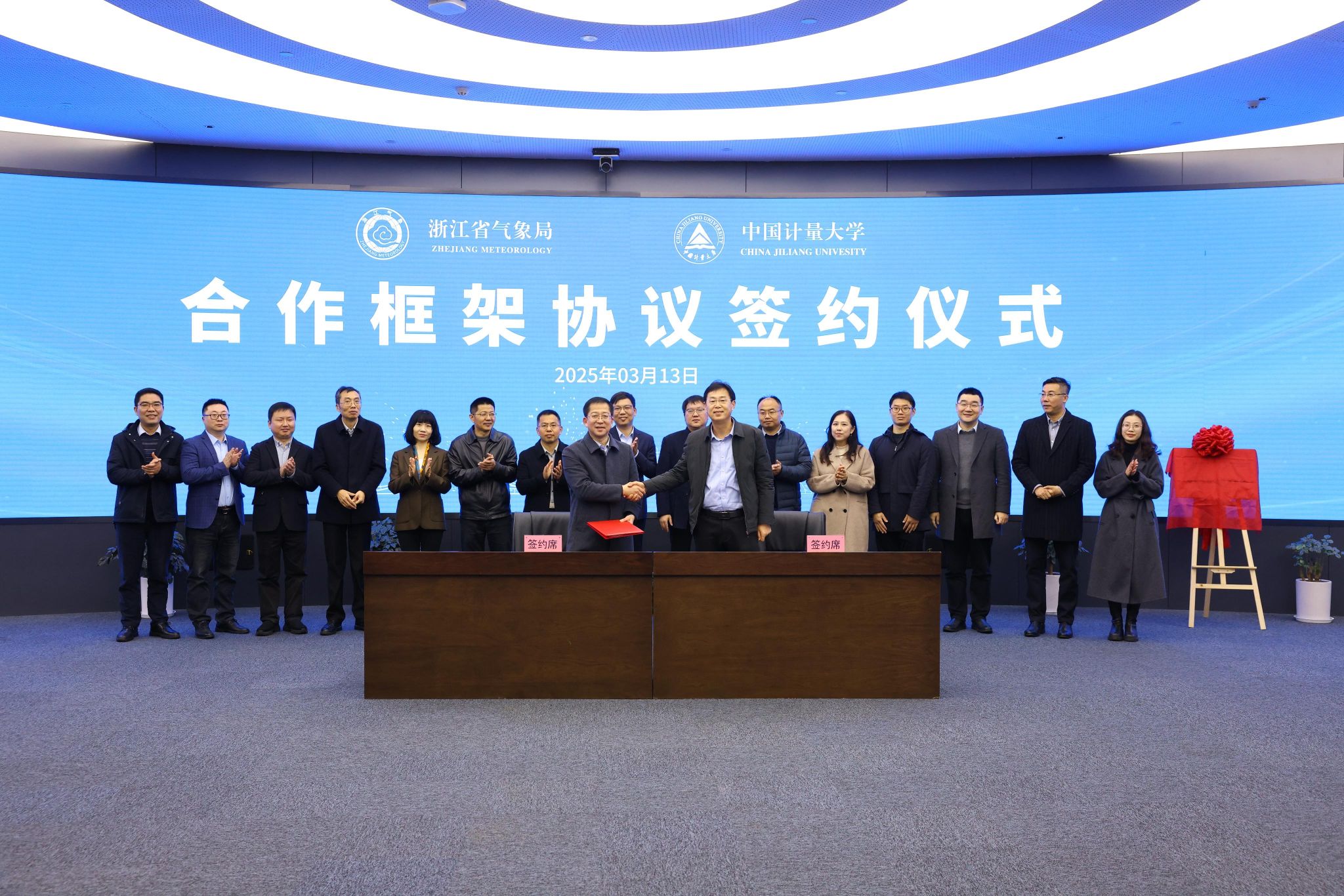 3月13日上午,我校与浙江省气象局战略合作签约仪式在浙江省气象大楼隆重举行。浙江省气象局党组成员、副局长潘劲松,我校副校长王新庆出席仪式,并代表双方签署协议。浙江省气象局相关部门负责人,我校科研院、研究生院、外联处、计测学院、能安学院等单位负责人参加签约仪式。