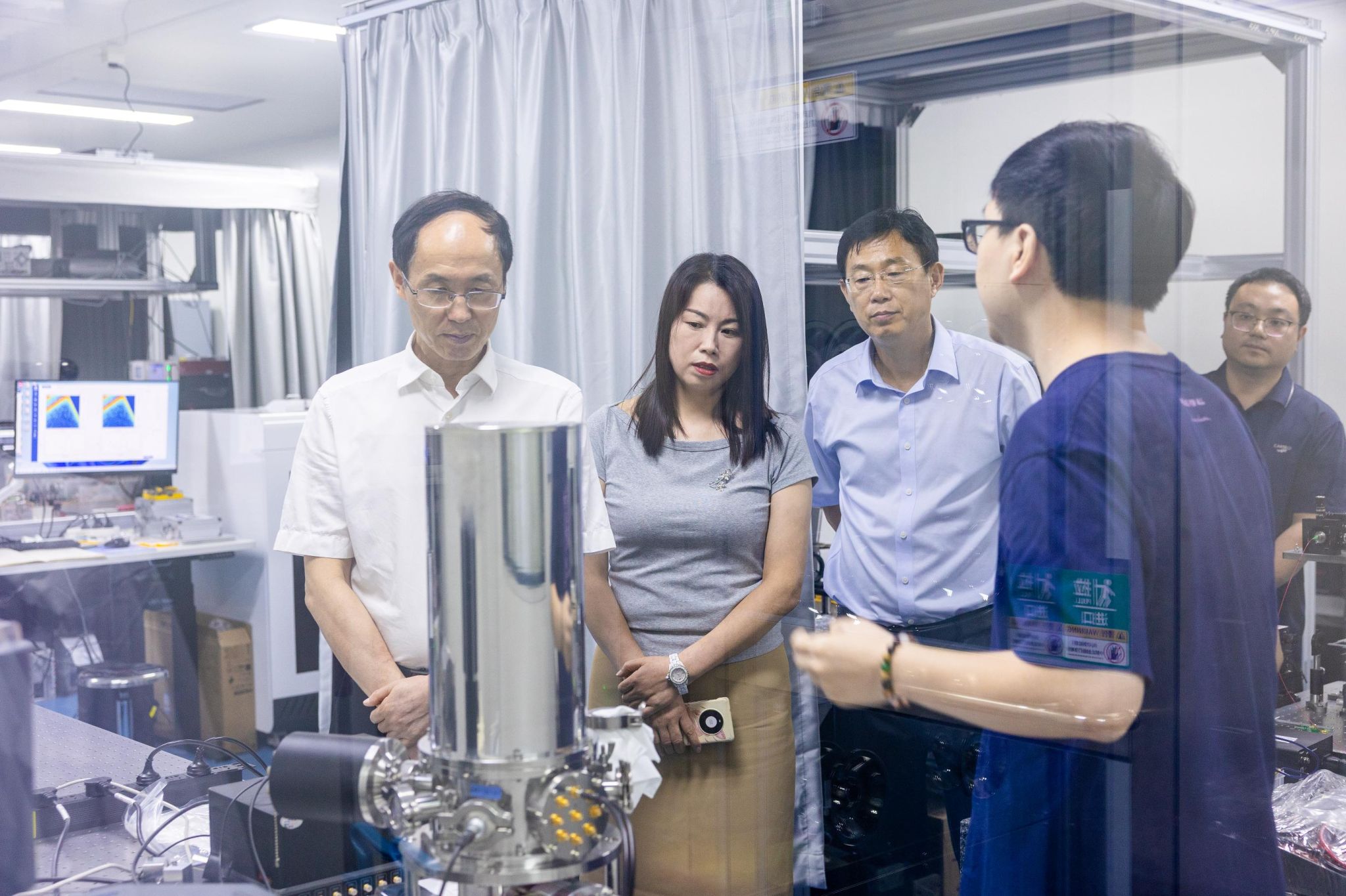 会后,王新庆陪同客人一行参观了学校量子传感、原位计量和生物计量实验室。