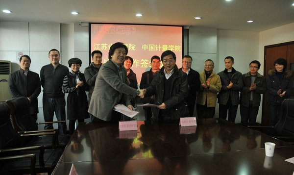 1月10日,在明德南楼会议室举行了我校与江苏省计量科学研究院战略合作签约仪式。江苏省计量科学研究院毛朔南院长一行到访我校并出席签约仪式座谈会。座谈会前林建忠校长接待了到访来宾。座谈会由俞晓平副校长主持,我校科技处葛洪良处长及机电学院、计测学院、信息学院、光电学院、材料学院、生命学院、经管学院、党办、校办、研究生部、学生处等部门领导出席了座谈会。