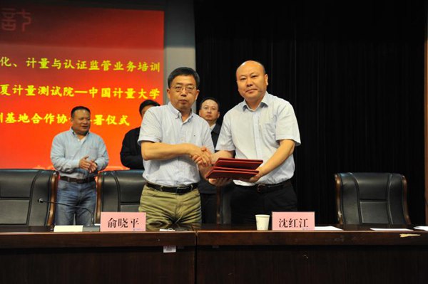 最后在主席台就座领导及全体学员的见证下,俞晓平副校长代表学校与宁夏计量测试院沈红江院长签订了科研与培训基地合作协议。