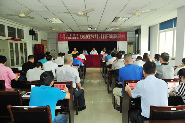 邵海增局长首先代表江门市局党组对关心、帮助本次战略合作协议签署及培训班举办的学校及继续教育学院领导表示衷心的感谢,他说目前所面临的新改革、新形势要求质检人员必须开拓视野、更新专业知识,局党组经过认真调研选择与全国质检行业最高学府——中国计量学院签署涵盖信息交流、合作研究、人才交流培训、实验室共建等方面的全面战略合作机制,以期共同促进质监事业发展。最后他提出三点意见:一是希望学有所成、学有所获,二是希望要结合实际、深入研讨,三是坚持理想信念、科学发展。