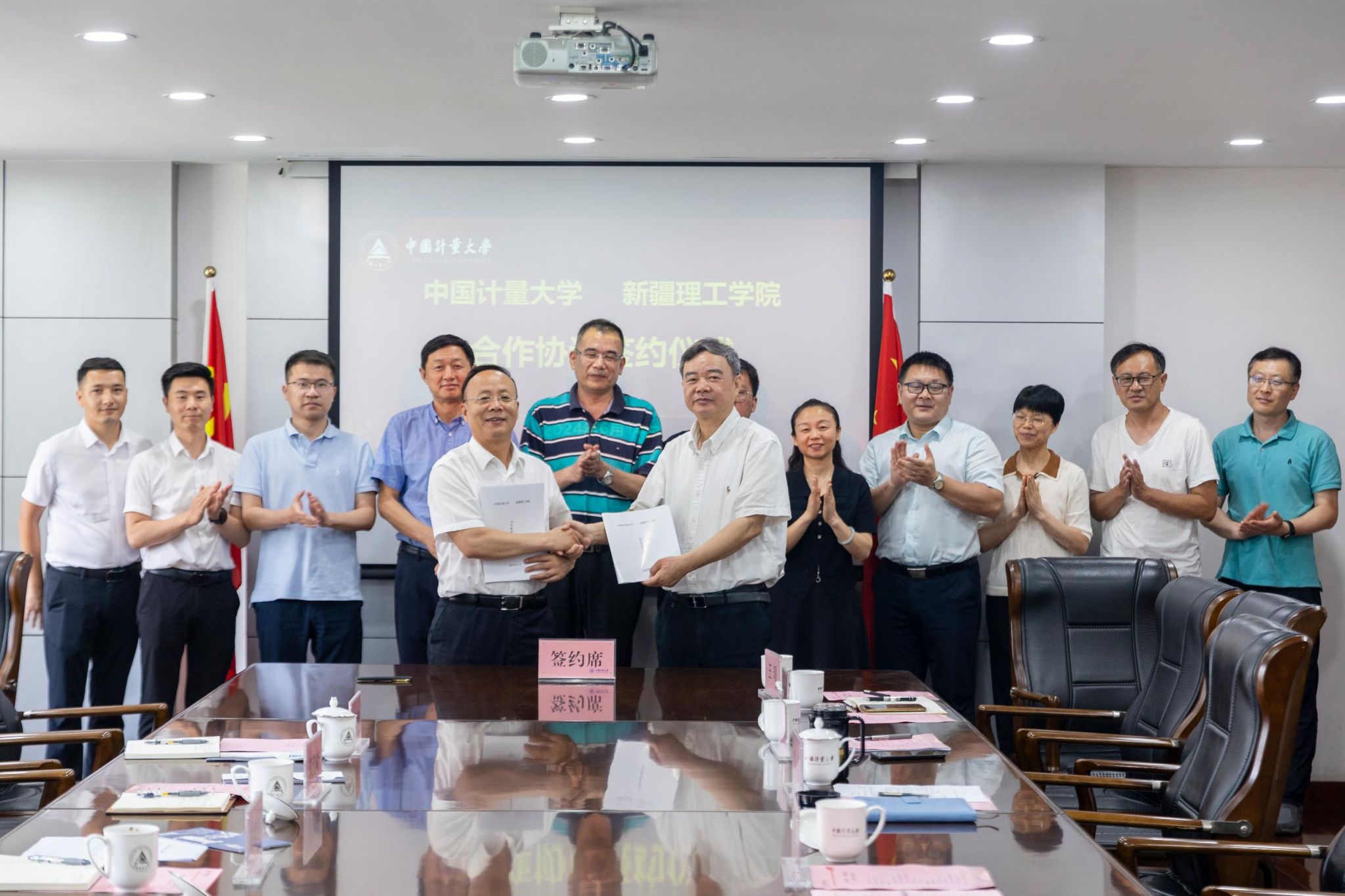 肖刚代表学校向周耀治一行的到来表示热烈欢迎,对新疆理工学院予以我校援疆教师的关心关怀表示感谢。他从历史沿革、办学规模、人才队伍、学科特色与平台、科研专长、服务市场监管事业发展等方面简要介绍了学校概况。他指出,中国计量大学牢记殷切嘱托,紧紧抓住“老本行”,聚焦特色教育科研与社会服务,近年来实现了高质量发展。他表示,我校与新疆理工学院合作基础深厚,合作关系紧密。2015年以来,学校先后选派8位教师赴新疆理工学院开展对口支援,圆满完成了相关工作任务,多位老师受到了新疆当地政府和我校上级主管部门的表彰。此次合作协议的签署,标志着双方合作将进入一个新阶段,希望双方加强特色互补,推进务实合作,携手共同发展。