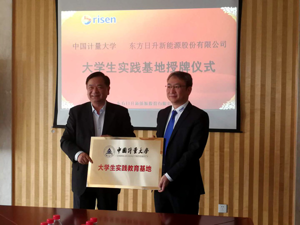 为进一步落实我校与东方日升新能源股份有限公司产学研合作,4月10日,校发展委员会副主任、校友总会会长冯时林,浙江省可再生能源协会秘书长罗之彤,光电学院特聘院长金尚忠教授、党委书记冯爱明等一行到东方日升新能源股份有限公司开展合作交流,并出席了中国计量大学-东方日升新能源股份有限公司大学生实践基地揭牌仪式。冯时林、王洪分别代表双方为“中国计量大学大学生实践基地”揭牌。