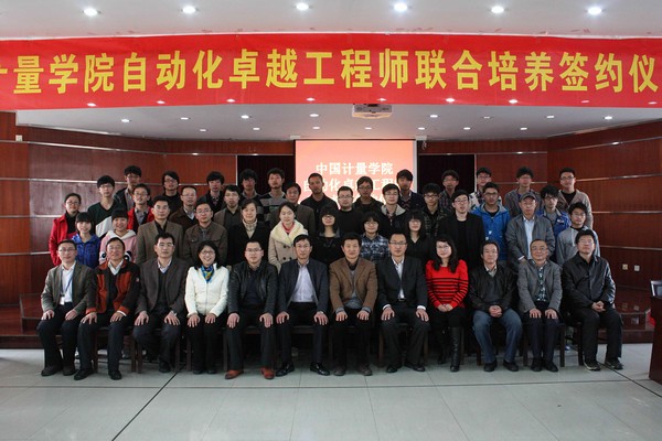 为了突出自动化专业“计控管一体化”的特色,为了培养“计控一体”和“管控结合”的自动化人才,机电工程学院自2012年2月成功加入国家第二批“卓越工程师教育培养计划”以来,充分遵循国家“卓越工程师教育培养计划”有关精神,积极探索、创新自动化卓越工程师人才培养模式。2013年3月12日下午,中国计量学院首届自动化卓越工程师联合培养签约仪式暨开班典礼隆重举行。中国计量学院副校长宋明顺教授,中国计量学院研究生部主任、自动化专业负责人陈乐教授,杭州和利时自动化有限公司、浙江中控技术股份有限公司等四家企业的代表,机电工程学院院长李青教授,党总支书记孙坚教授、党总支副书记汪志勤老师,自动化研究所全体老师以及2012级自动化卓越工程师班全体同学参加了仪式。签约仪式由机电工程学院孙卫红副院长主持。