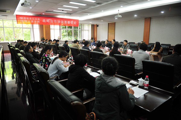 4月24日上午,中国标准化协会与我校战略合作协议签署仪式暨战略合作领导小组首次会议在我校闻厅一楼会议室举行。双方就建立战略合作机制,共同开展标准化协同创新研究、人才培养与培训、社会服务与合作交流等内容签署战略合作协议,并围绕2015年度重点合作内容交换意见。