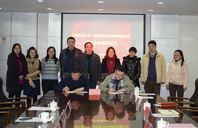 1月25日,我校与深圳市金证科技股份有限公司战略合作协议签约仪式在明德南楼313室举行。校党委委员、纪委书记王小华、金证学院执行院长孙建文、金证科技总裁助理易锋玉、金证科技人力资源部负责人陈晓燕、金证学院教务主任王洋、信息工程学院党委书记郑成林、信息工程学院院长金宁、对外联络处副处长贾岳嵩、教务处副处长宁顺兰、信息工程学院教学副院长陈建国、经济与管理学院党委副书记王小丹、金融工程专业负责人鲁统宇、信息工程学院计算机科学与技术学科副主任周永霞,计算机科学与技术系副主任杨小兵、徐展翼、陈燕敏和专业教师陈莲娜参加本次签约仪式并座谈,会议由信息工程学院院长金宁主持。