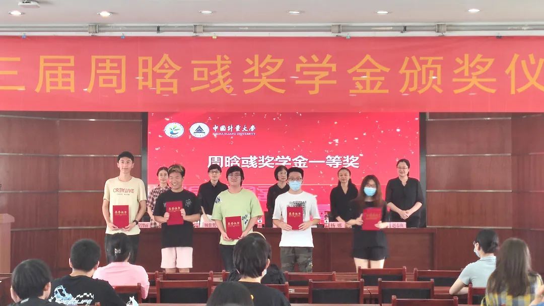 杨娜宣读了《关于表彰第三届周晗彧奖学金获得者的决定》。与会领导和嘉宾为获得本届周晗彧奖学金一、二、三等奖的71名学生颁奖。获奖学生代表侯雨彤在发言中回顾了自身的成长经历,感谢学院四年以来的关爱与培养,感谢周晗彧校友为量新学子设立奖学金,表示将不断超越自我、不负众望,在人生新的旅程中创造更加卓越的业绩,成长成才、报效祖国。