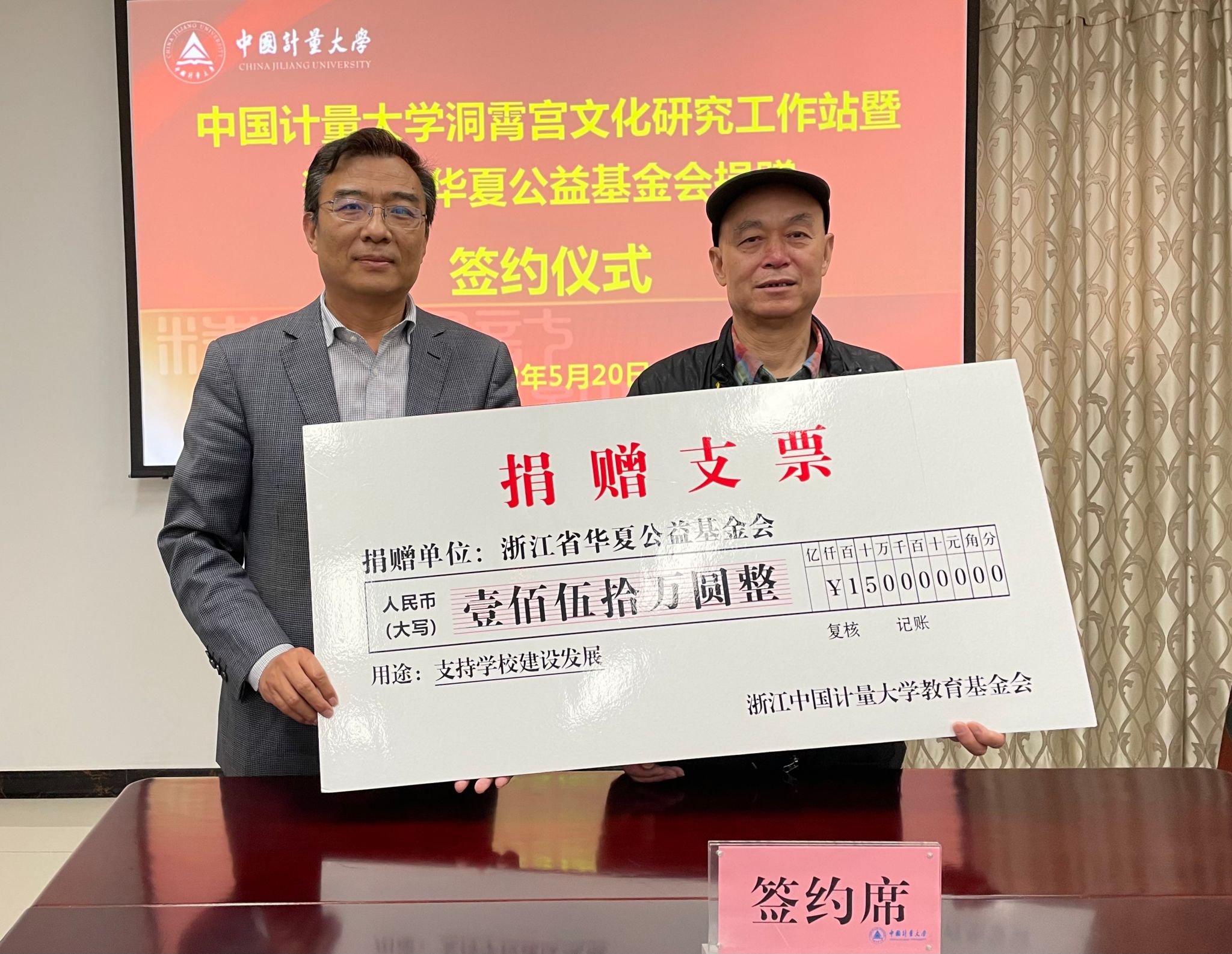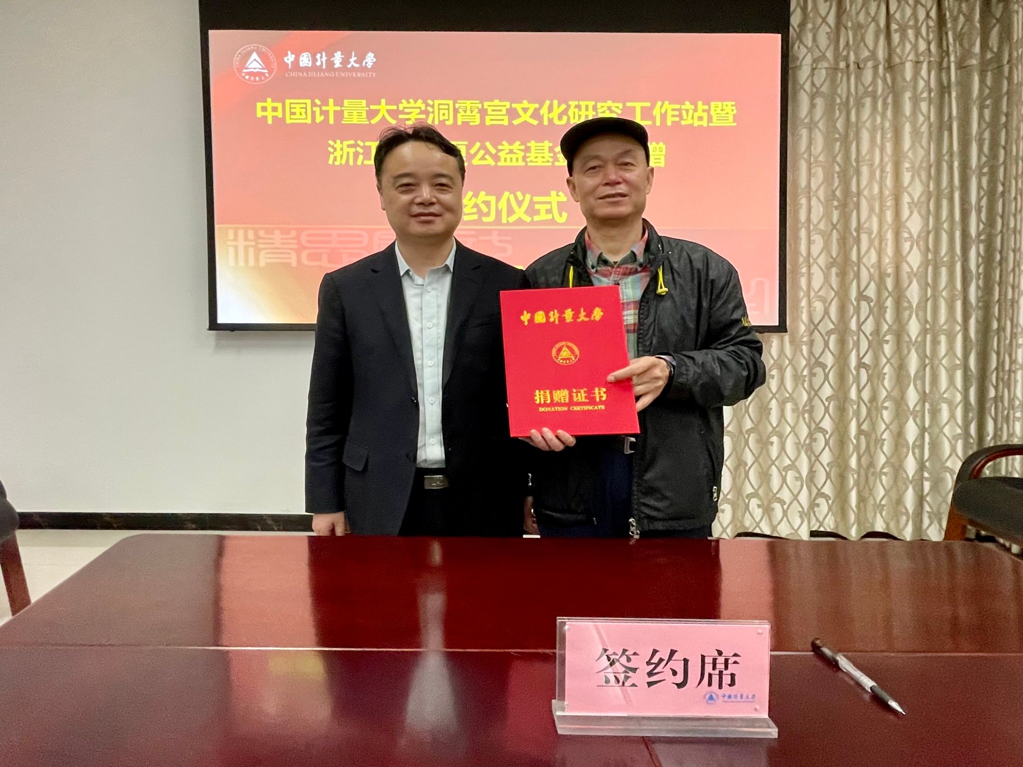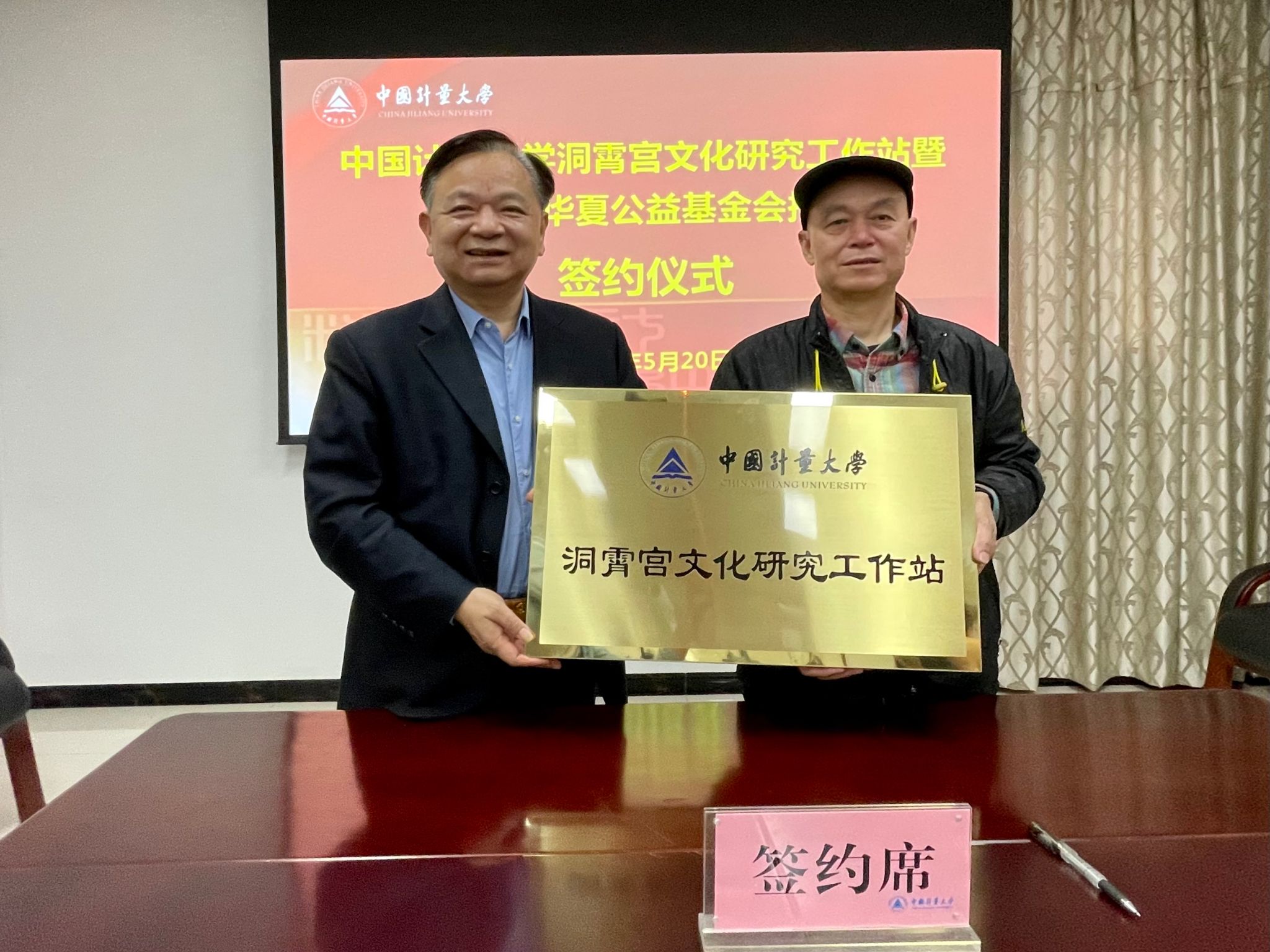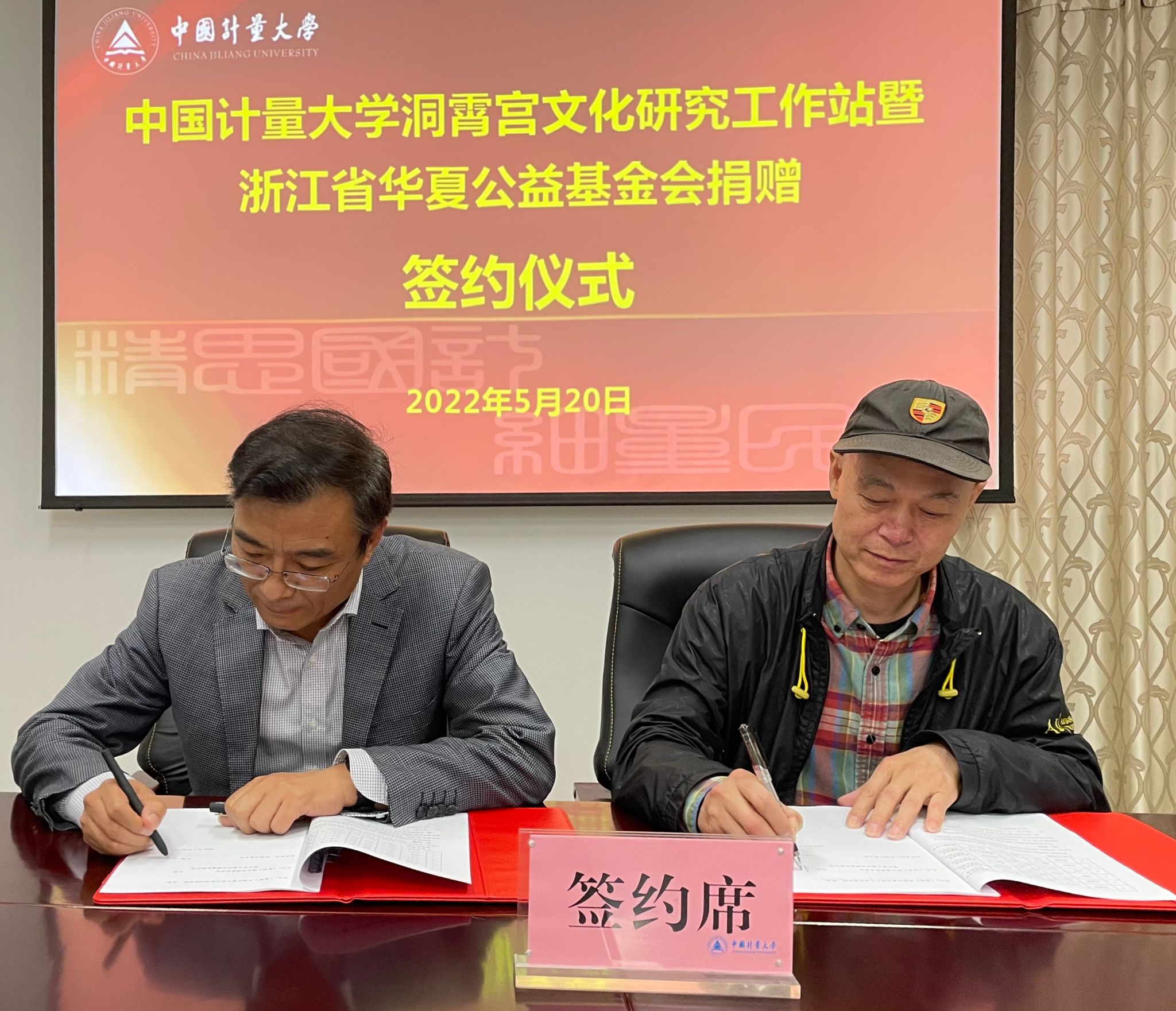 5月20日,在第23个世界计量日到来之际,中国计量大学洞霄宫文化研究工作站暨浙江省华夏公益基金会捐赠签约仪式在浙江省健康系统工程研究院举行。省发改委原副书记、副主任焦旭祥,浙江省健康系统工程研究院秘书长、浙江省华夏公益基金会副理事长俞树盛参加仪式。校长徐江荣,校发展委员会副主任、校友总会会长冯时林,计划财务处、对外联络处、人文与外语学院负责人参加签约仪式。仪式由对外联络处负责人主持。