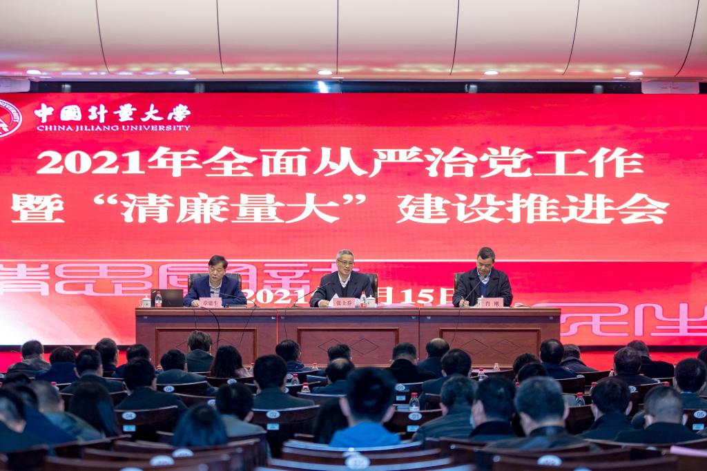 3月15日,我校召开2021年全面从严治党工作暨“清廉量大”建设推进会。校党政领导班子成员张土乔、宋明顺、肖刚、程刚、俞晓平、葛洪良、章建生、张勇、王斌锐出席会议,校纪委委员、全体中层干部参加会议。党委副书记肖刚主持会议。