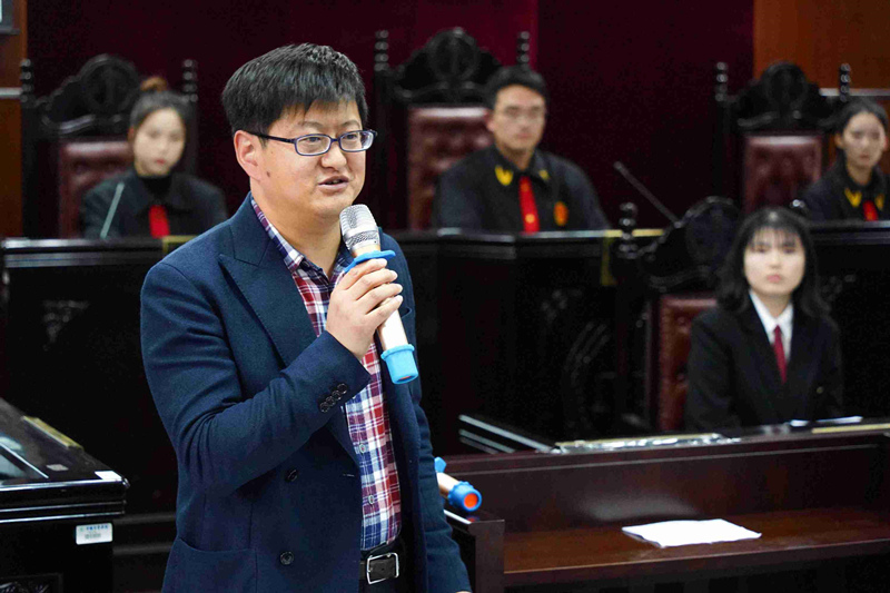 冯爱明作总结。他指出,此次选择典型高校科研人员犯罪案件展开,通过模拟法庭的现场展示,让大家身临其境,感受到法律的严肃性,希望法学院结合专业,积极收集相应案例,加深警示效果。