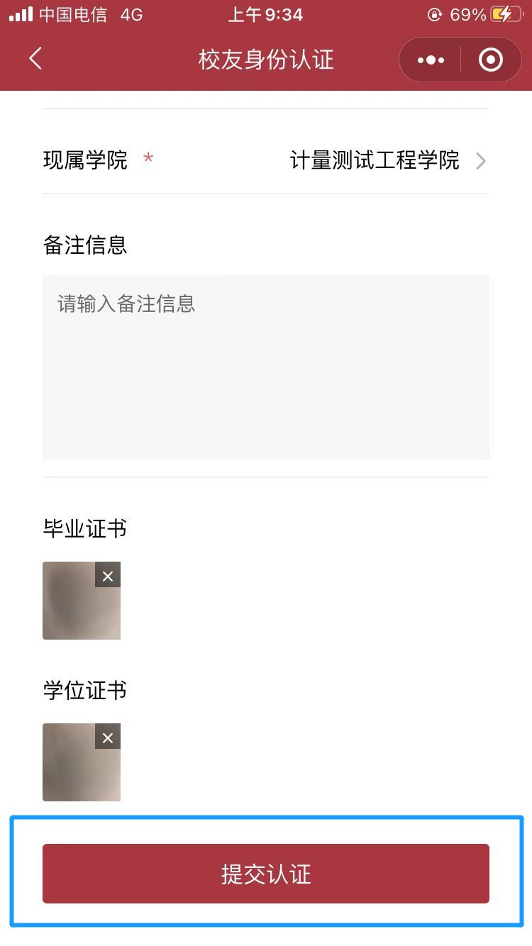 2、未办理校友卡的校友,可以通过“计量校友”微信小程序,准确填写相关信息,提前办理电子校友卡。