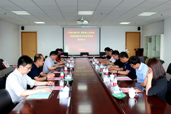 俞晓平、杨俊涛、杨德柱代表校、政、企三方签署了《合作共建中国计量大学国家大学科技园河南(原阳)分园协议书》。