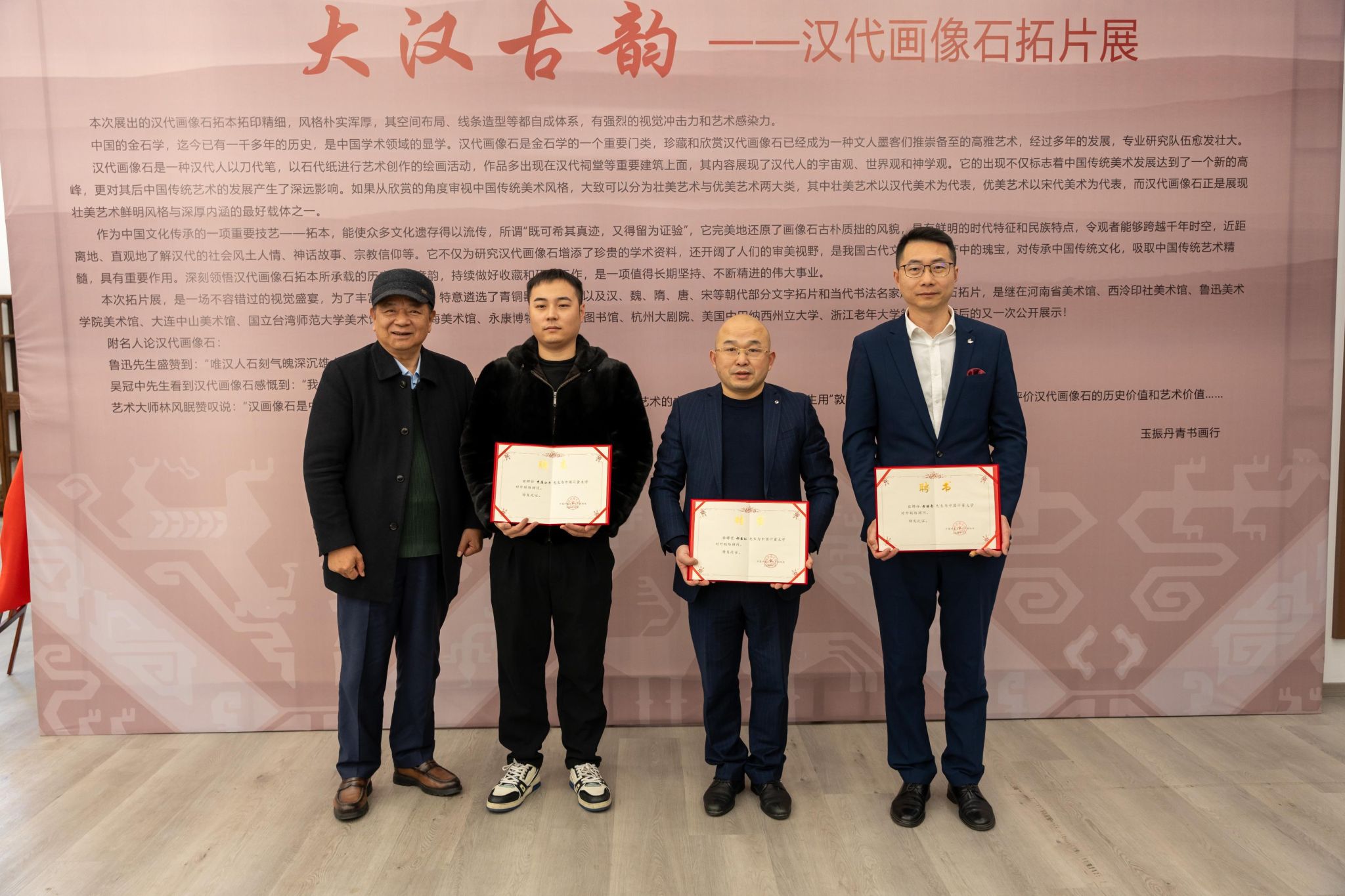 为了加强与合作单位的联络交流,12月19日,对外联络处联合桐庐县政协在桐庐玉振丹青艺术馆开展了以“大汉古韵——汉代画像石拓片展桐庐行”为主题的文化宣传活动。校发展委员会副主任、校友总会会长冯时林,桐庐县政协副主席周建英,杭州墨舞书院院长郝益弘出席活动。外联处、桐庐县老年大学学员参加了活动。