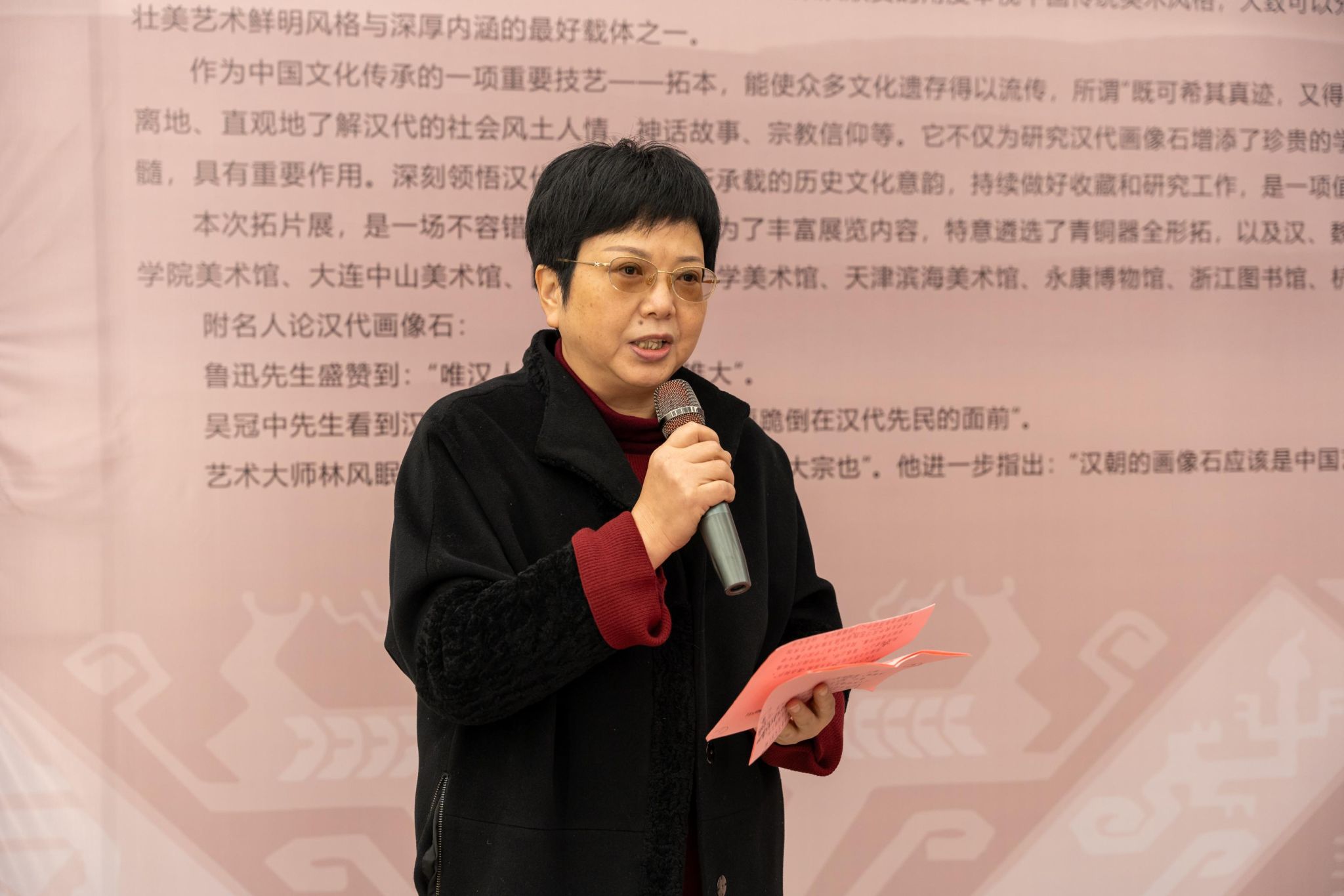 郝益弘介绍了汉代画像石的历史背景和艺术价值,表示此次展览不仅是对古代艺术的呈现,也是现代文化传播的重要方式。